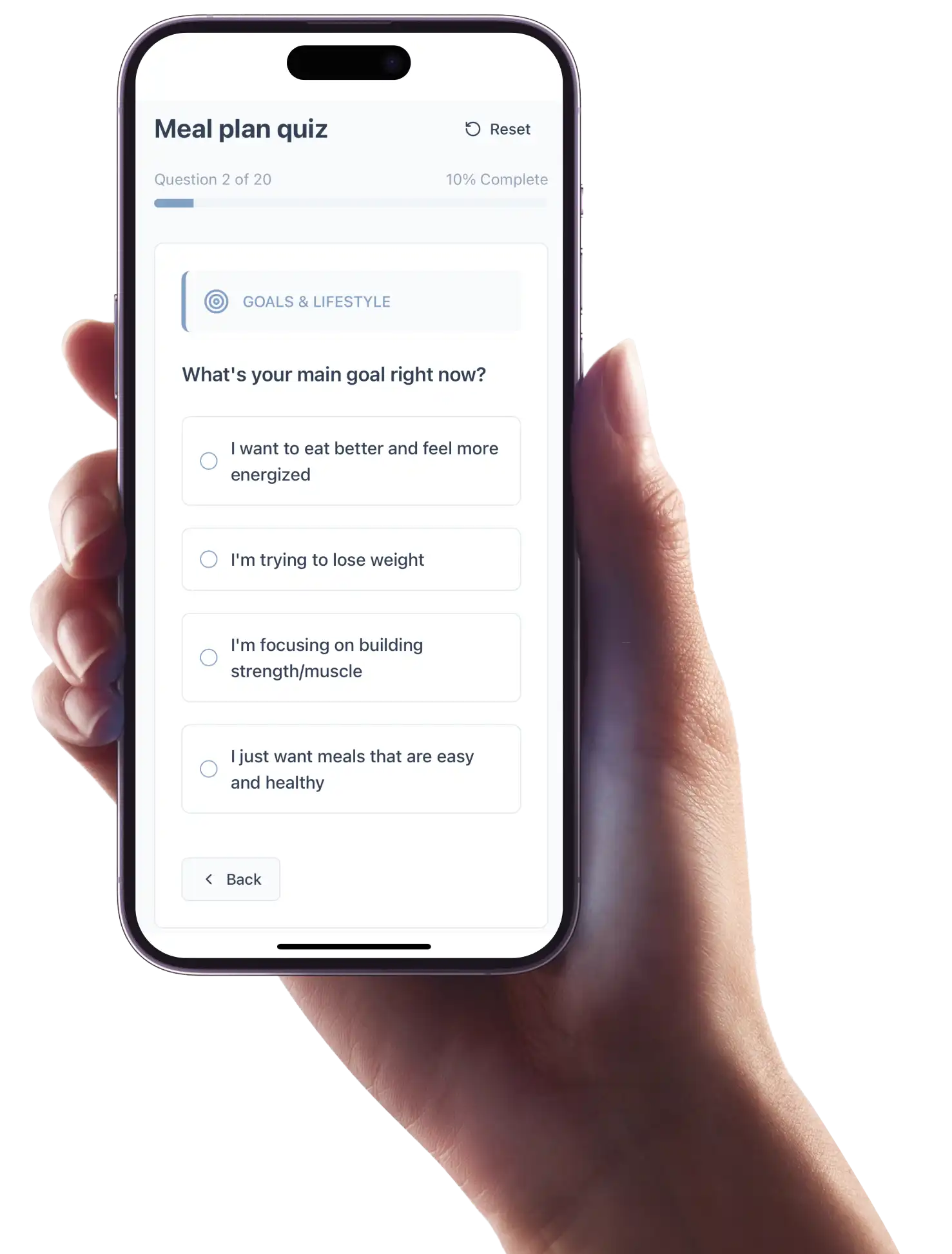 Miután befejezed a kvízt, személyre szabott heti tervet kapsz, amely igazodik a céljaidhoz – és azonnali hozzáférést exkluzív tartalmakhoz a Nutritious Hubban.